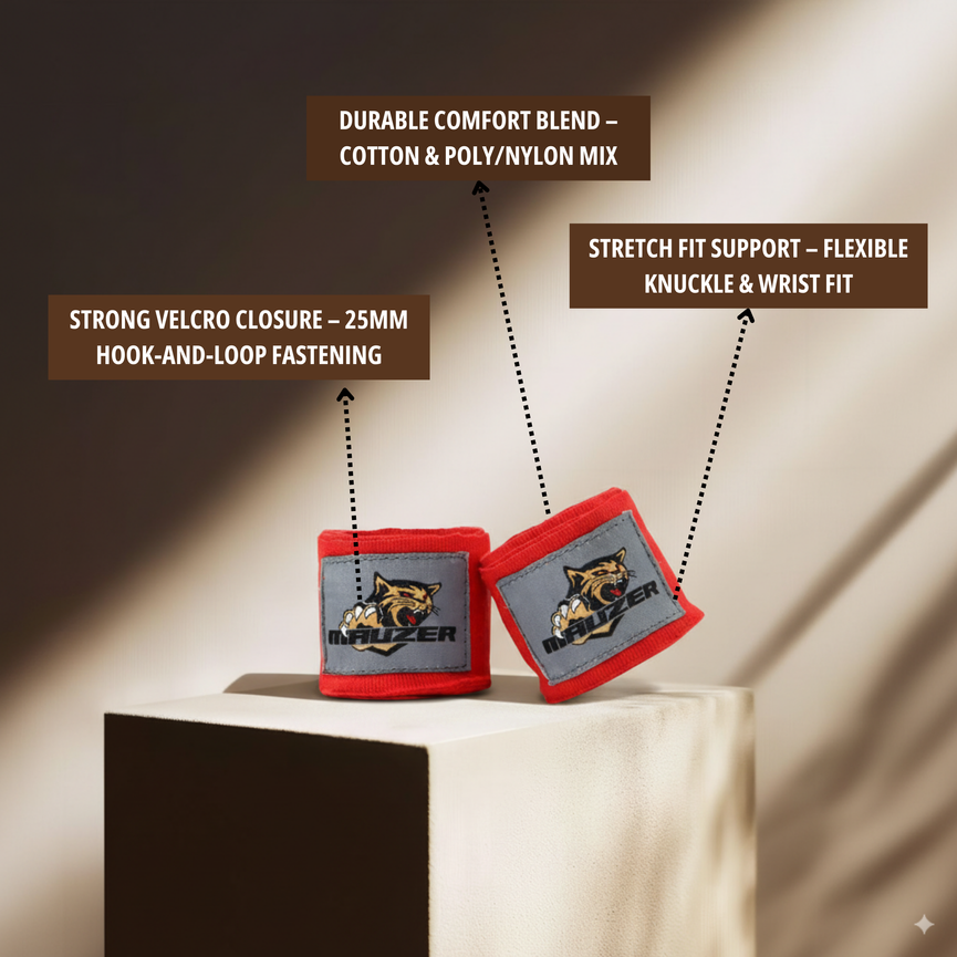 The soft, breathable fabric allows smooth wrapping between the fingers for a snug, customized fit, while the slight stretch ensures excellent contouring around the knuckles and wrists. Unlike traditional bulky wraps, these thinner Mexican-style wraps take up less space inside your gloves without compromising on protection.